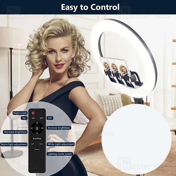 در رینگ لایت بیوا RL-03 میتوانید کنترل IR برای تنظیم رنگ و شدت نور بهصورت بیسیم در نظر گرفته شده است.